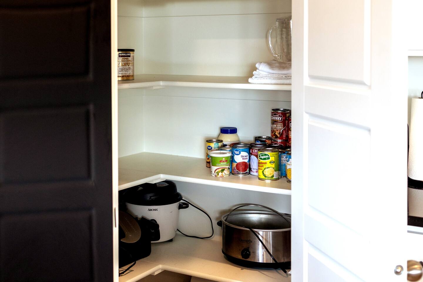 The living room has 5 oversized electric motorized leather recliners, perfect for movie night with the 72" TV and surround sound home theater. The dining area has seating for 6 at the dining table. Place settings for 8 are also included. The full kitchen has been stocked with all the utensils and appliances you need to prepare delicious meals during your stay. The queen bed room has a queen sleigh bed. The hallway bathroom has a tub shower and a linen closet with extra linens.
